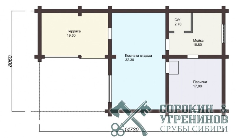 Сруб бани рубленый из бревна кедра диаметром 280-320мм площадью 82,36м2. Размер сруба 8,06х14,73 метров по осям. Баня с верандой. Большая парная 17м2, мойка, санузел, комната отдыха и терраса. На втором этаже антресоль. Сруб рубленый вручную (канадская рубка), брёвна окоренные гидро-окоркой (водой под высоким давлением), а так, же это можно сделать скобелем или лопатой, или строганное рубанком. Объем бревна в срубе 80м3. Баня установлена во Владивостоке в 2017 году.
