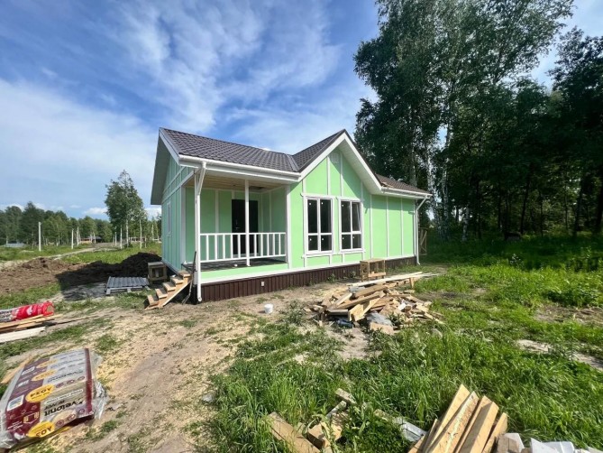 Цена указана с разводкой коммуникаций по дому. Фактическое подключение электричества и воды рассчитывается индивидуально. Внутри предчистовая отделка.